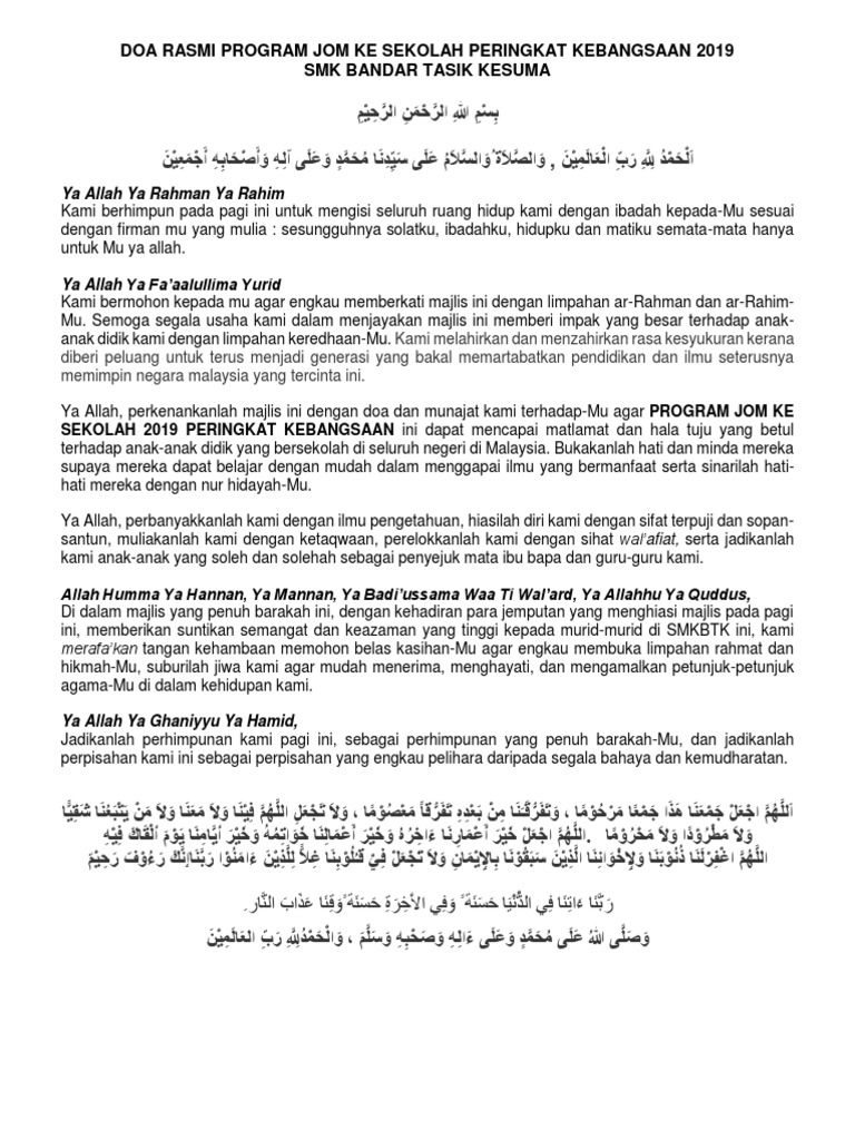 Doa Jom Ke Sekolah 2019 Written By Escano22 Friday, March 25, 2022 Add Comment Edit Doa Program Jom Ke Sekolah Wallpaper Doa Rasmi Program Jom Ke Sekolah Peringkat Kebangsaan 2019 Pdf Doa Program Jom Ke Sekolah Pdf Doa Rasmi Program Jom Ke Sekolah Pdf Share this post